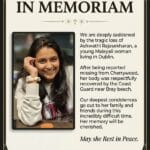 ഡബ്ലിനിലെ ചെറീവുഡിൽ നിന്നും കാണാതായ മലയാളി യുവതി അശ്വതി രാജശേഖരന്റെ മൃതദേഹം കണ്ടെത്തി.