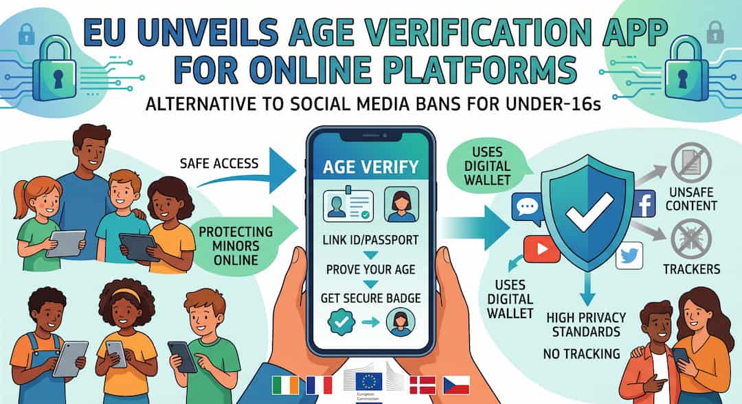 ഓസ്ട്രേലിയ ഉൾപ്പെടെയുള്ള രാജ്യങ്ങൾ 16 വയസ്സിന് താഴെയുള്ള കുട്ടികൾക്ക് സോഷ്യൽ മീഡിയ പൂർണ്ണമായി നിരോധിക്കുന്ന നിയമങ്ങൾ കൊണ്ടുവന്ന പശ്ചാത്തലത്തിലാണ് യൂറോപ്യൻ യൂണിയൻ വ്യത്യസ്തമായ ഒരു ഡിജിറ്റൽ പരിഹാരവുമായി രംഗത്തെത്തിയിരിക്കുന്നത്. പൂർണ്ണ നിരോധനത്തിന് പകരം ഉപയോക്താവിന്റെ പ്രായം കൃത്യമായി പരിശോധിച്ചുറപ്പിക്കാൻ സഹായിക്കുന്ന ഒരു സംവിധാനമാണിത്.