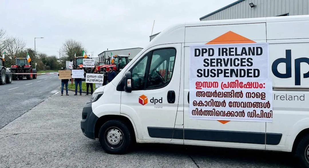 ഇന്ധനവില വർദ്ധനവിനെതിരെയുള്ള പ്രതിഷേധങ്ങൾ രാജ്യത്ത് ശക്തമായി തുടരുന്ന പശ്ചാത്തലത്തിൽ, റിപ്പബ്ലിക് ഓഫ് അയർലണ്ടിലെ തങ്ങളുടെ കൊറിയർ സേവനങ്ങൾ നാളെ പൂർണ്ണമായി നിർത്തിവയ്ക്കാൻ പ്രമുഖ ഡെലിവറി കമ്പനിയായ ഡിപിഡി (DPD Ireland) തീരുമാനിച്ചു.