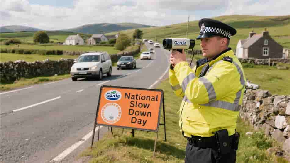 ഇന്ന് രാവിലെ മുതൽ അർധരാത്രി വരെ അയർലൻഡിൽ ദേശീയ സ്ലോ ഡൗൺ ദിനമായി ആചരിക്കുന്നു. ഗാർഡ  (അയർലൻഡ് പോലീസ്) റോഡ് സേഫ്റ്റി അതോറിറ്റിയുമായി (RSA) സഹകരിച്ച് 24 മണിക്കൂർ നീളുന്ന രാജ്യവ്യാപക അമിതവേഗ നിയന്ത്രണ ഓപ്പറേഷൻ നടത്തുകയാണ്.