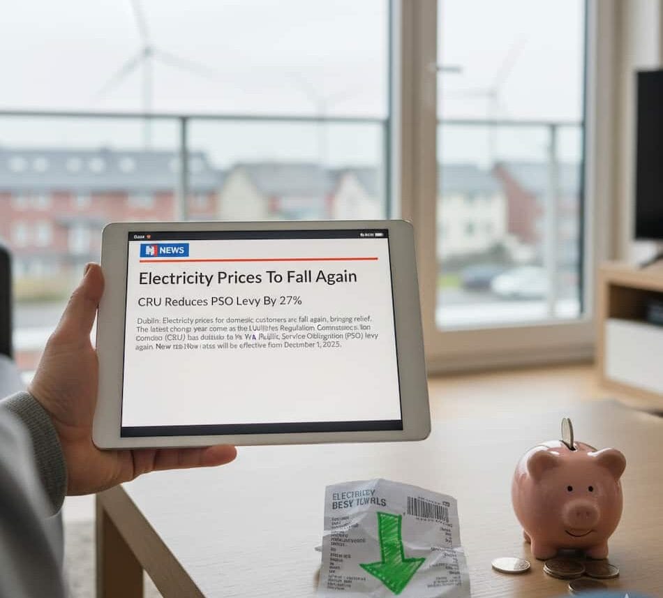 ഡബ്ലിൻ: ഗാർഹിക ഉപഭോക്താക്കൾക്ക് ആശ്വാസമായി വൈദ്യുതി നിരക്കുകൾ വീണ്ടും കുറയാൻ സാധ്യത. യൂട്ടിലിറ്റീസ് റെഗുലേഷൻ കമ്മീഷൻ (CRU) പബ്ലിക് സർവീസ് ഒബ്ലിഗേഷൻ (പിഎസ്ഒ) ലെവിയിൽ വീണ്ടും കുറവ് വരുത്താൻ തീരുമാനിച്ചതോടെയാണ് ഈ വർഷത്തെ ഏറ്റവും പുതിയ മാറ്റം. 2025 ഡിസംബർ 1 മുതൽ പുതിയ നിരക്കുകൾ പ്രാബല്യത്തിൽ വരും.