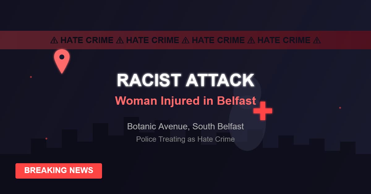 ബെൽഫാസ്റ്റ്: ദക്ഷിണ ബെൽഫാസ്റ്റിലെ ബൊട്ടാണിക് അവന്യൂവിൽ ബുധനാഴ്ച രാവിലെ 9.30 ഓടെ നടന്ന വംശീയ ആക്രമണത്തിൽ 20 വയസ്സുള്ള യുവതിക്ക് ഗുരുതര പരിക്കേറ്റു. പോലീസ് ഇതിനെ വിദ്വേഷ കുറ്റകൃത്യമായി കണക്കാക്കി അന്വേഷണം ആരംഭിച്ചു.