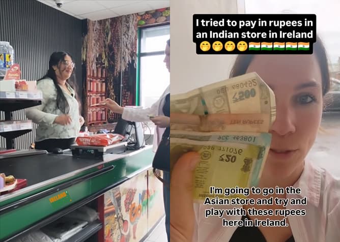 അയർലഡിൽ ഇന്ത്യൻ കറൻസി ഉപയോഗിച്ച് സാധനങ്ങൾ വാങ്ങാൻ ശ്രമിച്ച യുവതിയുടെ വീഡിയോ വൈറൽ